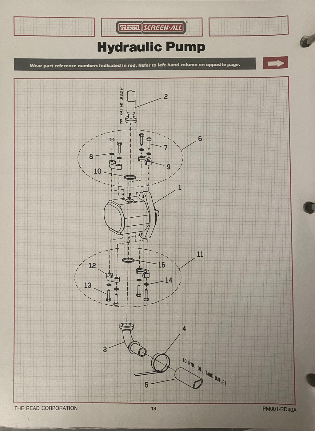 10379 Hydraulic Pump, used for the Read screens, models RD-40. This is a new aftermarket pump, of the OEM design. You mau see part number 7862 used.